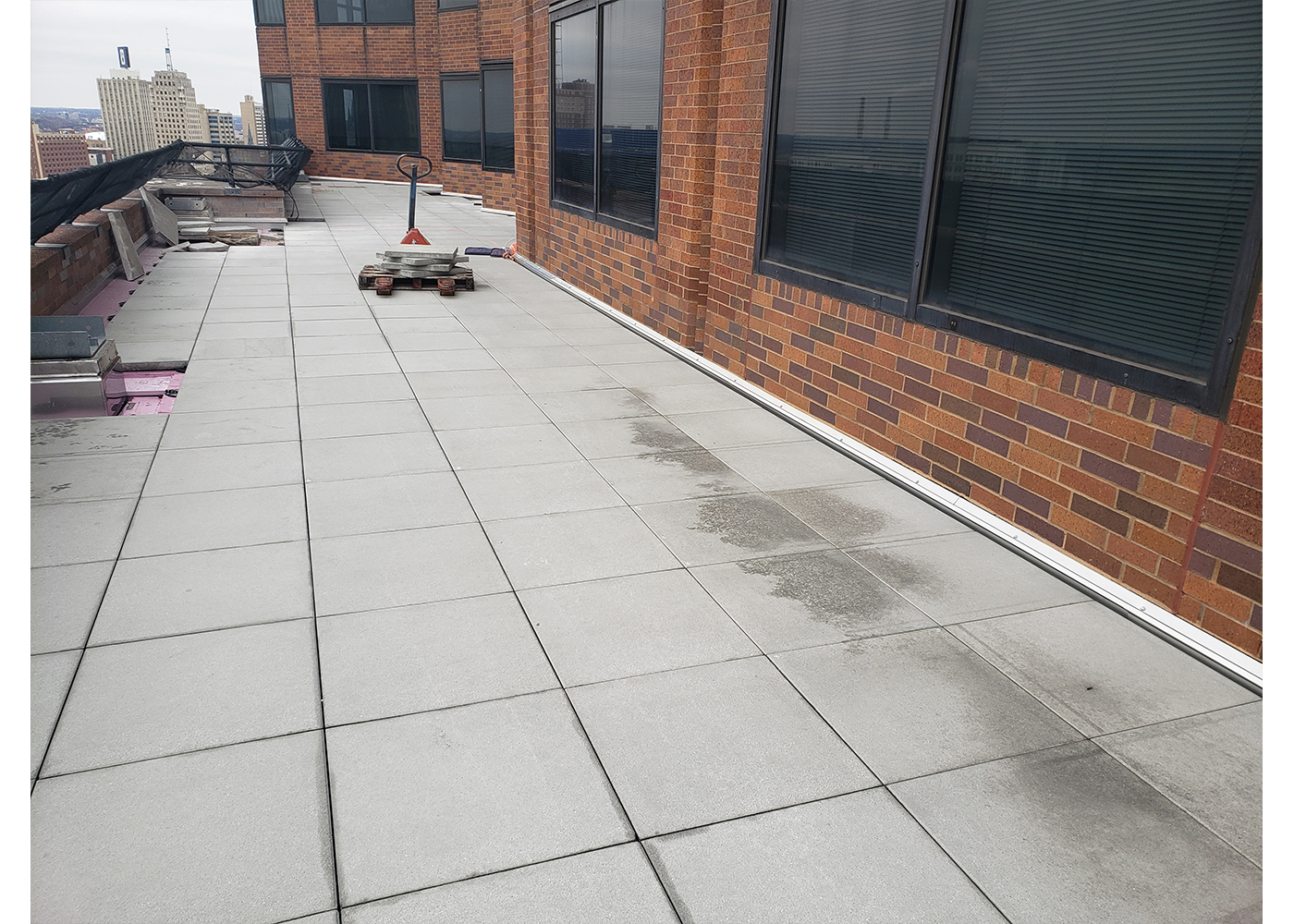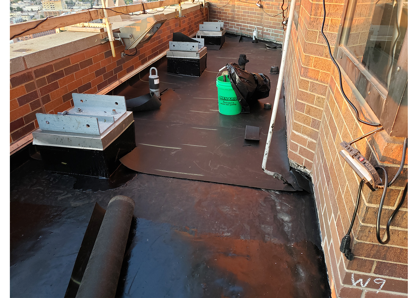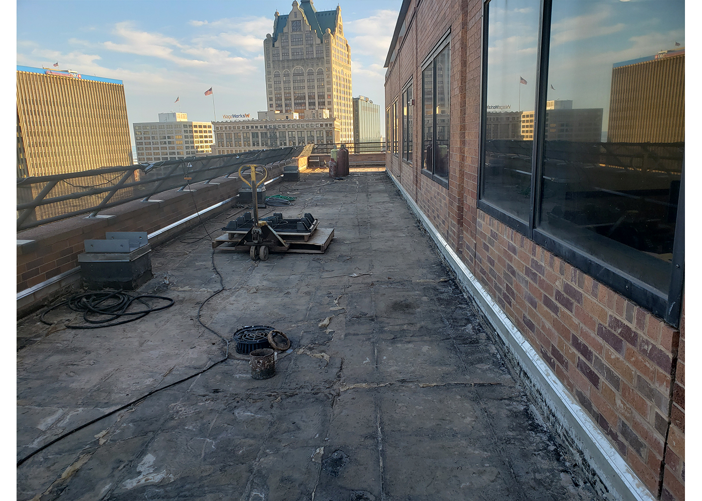 So when the time came for roof system work, logistics would be more challenging than most roofing projects. F.J.A. Christiansen Roofing was awarded the contract for the work, which involved the replacement of roof systems on corner balconies and plaza decks on two other floors of the tower.