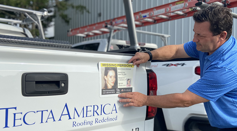 Over 35 years National Center for Missing and Exploited Children (NCMEC) has received more than 4.9M calls, circulated billions of photos of missing children, and helped recover 311K children. Tecta America New England and WeatherGuard locations have trucks with a missing person magnet to aid NCMEC in their search. Portland Project Manager Ethan Owens is placing a new magnet on his truck after the person on the previous magnet was found safe.