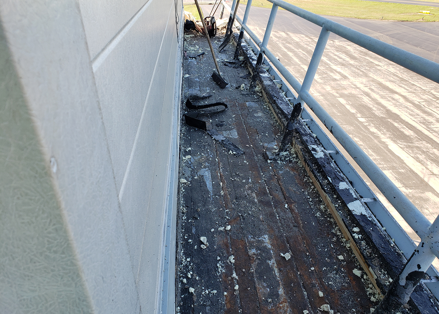 Another challenge – one unique to the setting, was control of debris, Kocherer said. FJAC crews had to ensure that debris from the removal of the existing roof and any bits of insulation was completely contained to eliminate the risk of wind-blown debris affecting aircraft engines. That process included the assignment of an FJAC crewman to monitor the runway.