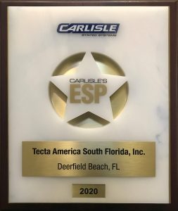 We would like to congratulate Tecta America South Florida, Inc. for recently receiving Carlisle’s 2020 Excellence in Single-Ply (ESP) award.